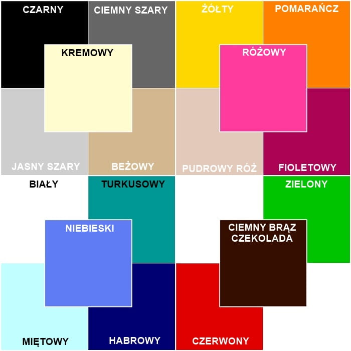 - Materiał w kolorze bieli plus doszyte ozdobne wstawka w dowolnym kolorze. (góra,dół)