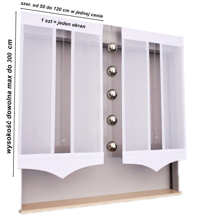 - Wysokość firany dowolna max. do 300 cm.