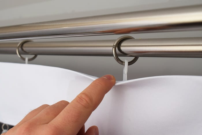 - Każdy panel posiada wszytą taśmę wraz z listwą pcv, którą wyciągamy do prania. Listwa pcv sprawia, iż panel jest idealnie naciągnięty ku górze.