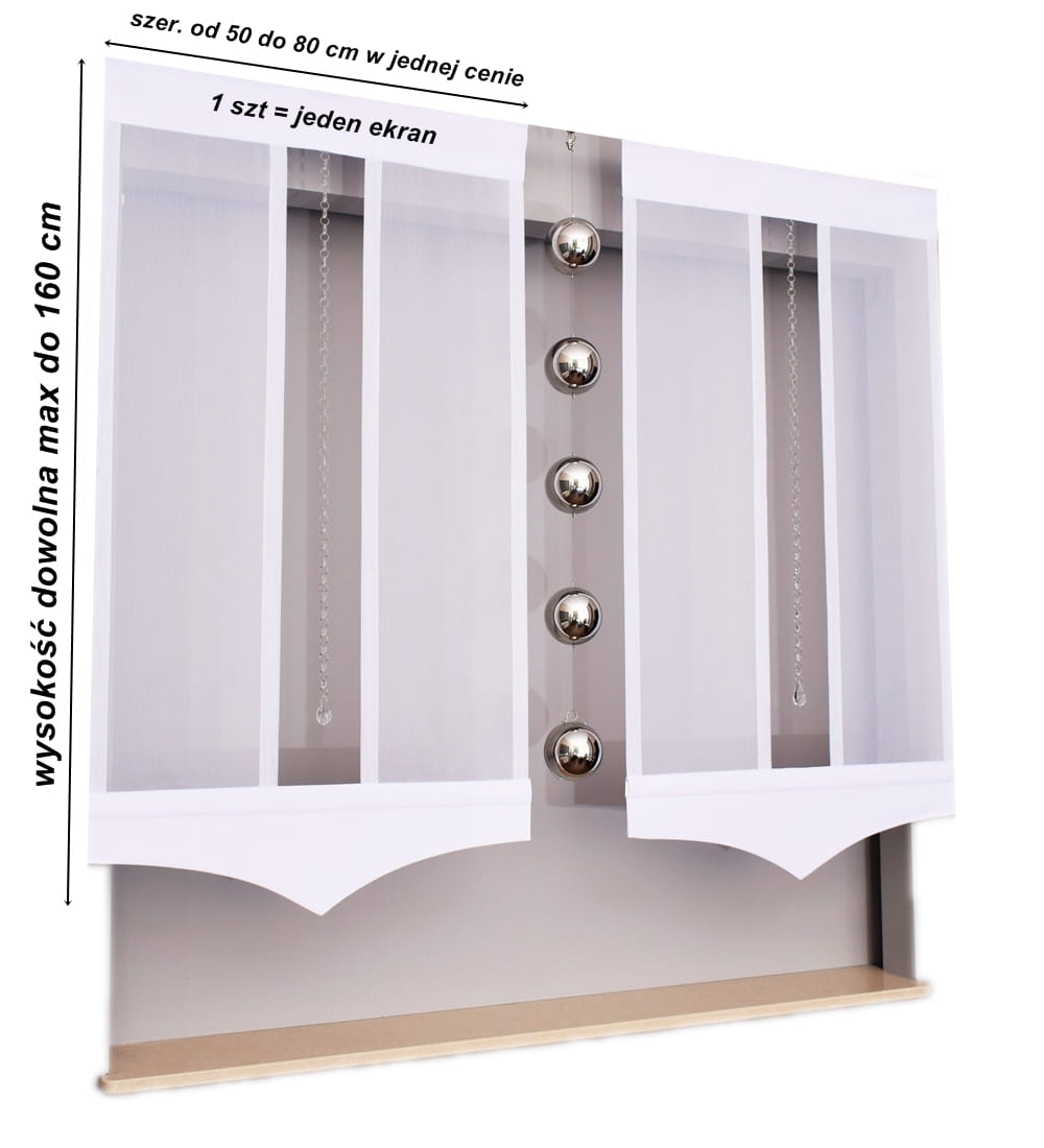 - Wysokość firany dowolna max. do 160 cm.