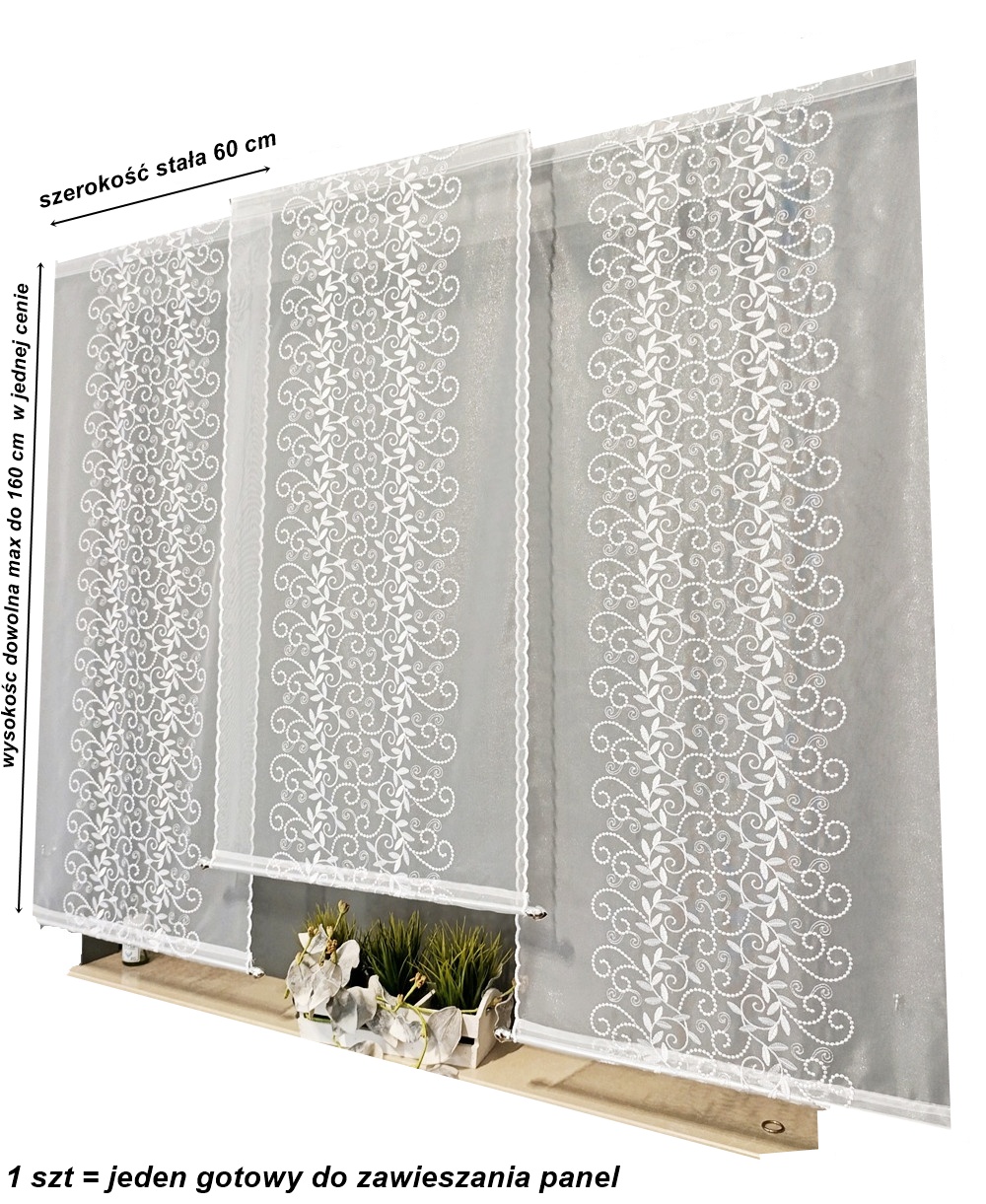 - Szerokość panela jest stała i wynosi 60 cm (nie ma możliwości innej szerokości, ponieważ brzegi są wykończone fabrycznie ozdobnym haftem)