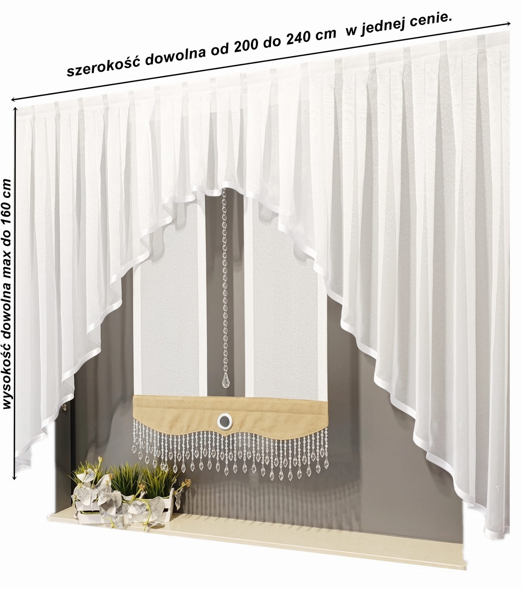 - wysokość boczna firanki max do 160 cm