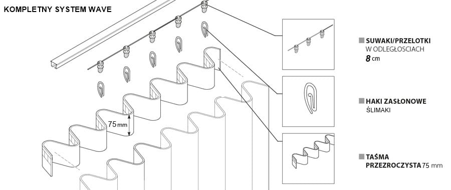 KOMPLET DO SYSTEMU VAVE WAVE TAŚMA SZNUREK AGRAFKI 1 MB rozstaw co 6 cm lub co 8 cm