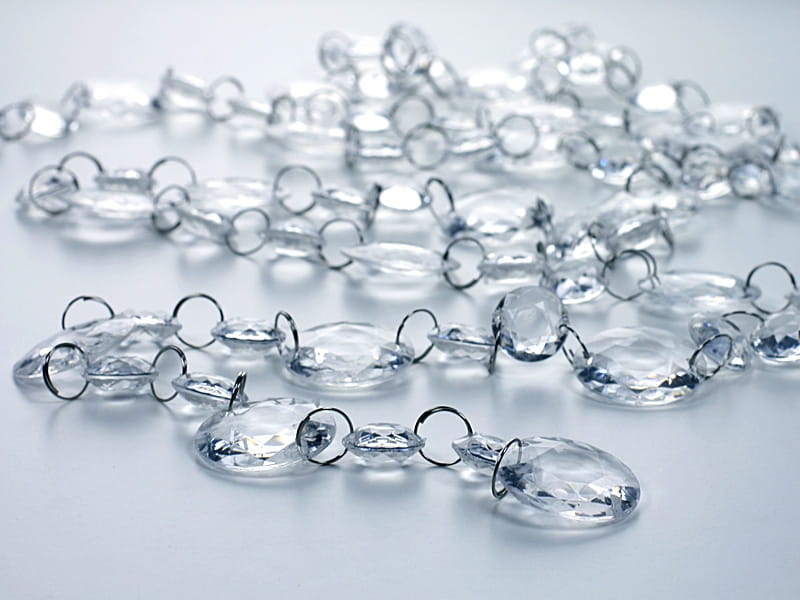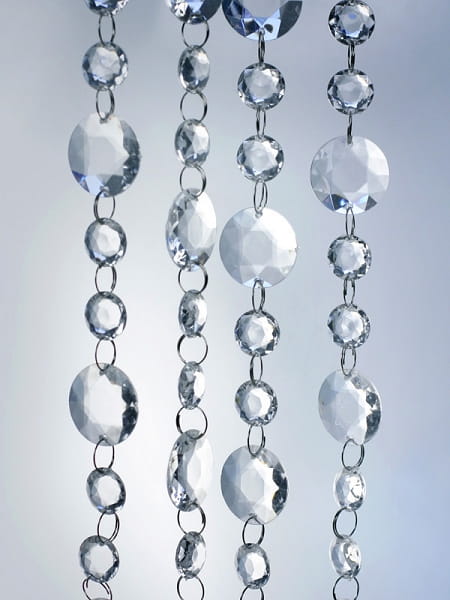 - Kryształy połączone są metalowymi kółeczkami, tworząc wspaniały łańcuch, dzięki czemu idealnie nadają się do :