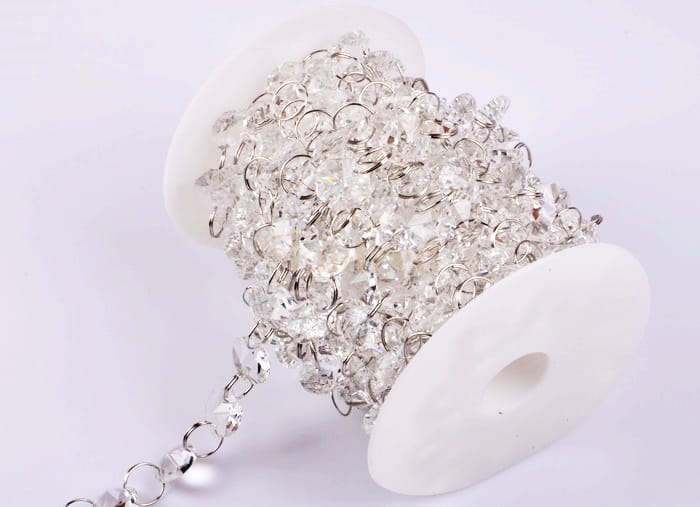 - Kryształy połączone są metalowymi kółeczkami, tworząc wspaniały łańcuch, dzięki czemu idealnie nadają się do :