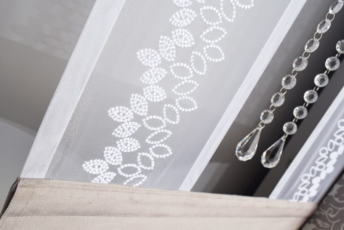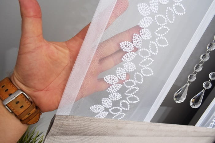 - Panel wykonany z bardzo ładnej tkaniny haftowanej nie przyciemniającej wnętrza.