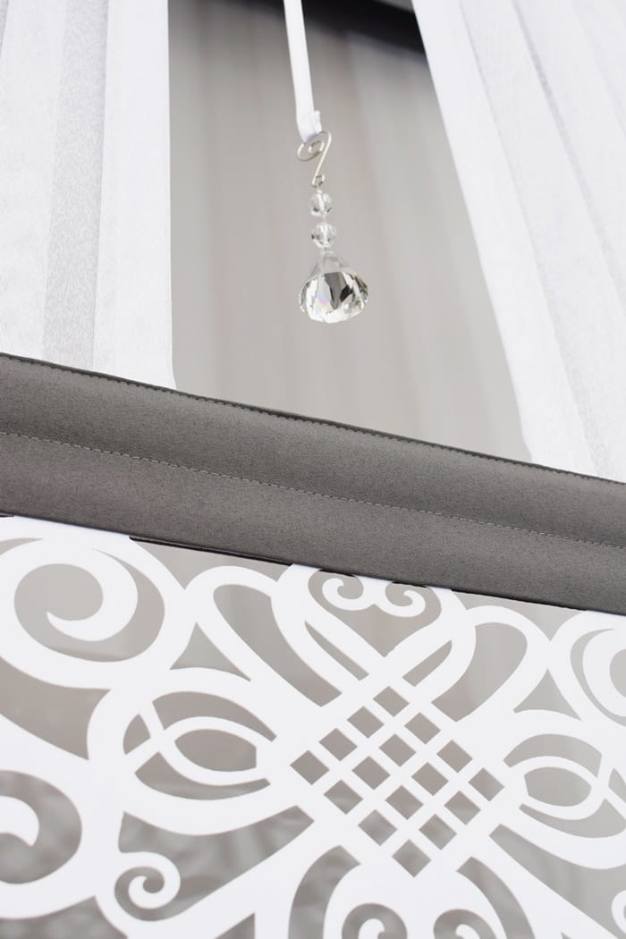 - Każdy panel posiada wszytą taśmę wraz z listwą pcv, którą wyciągamy do prania. Listwa pcv sprawia, iż panel jest idealnie naciągnięty ku górze.