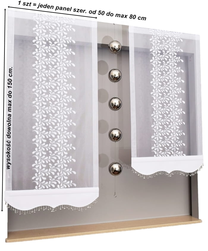 - Wysokość firany dowolna max. do 150 cm.