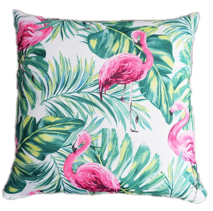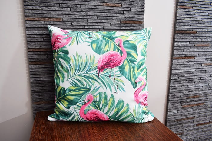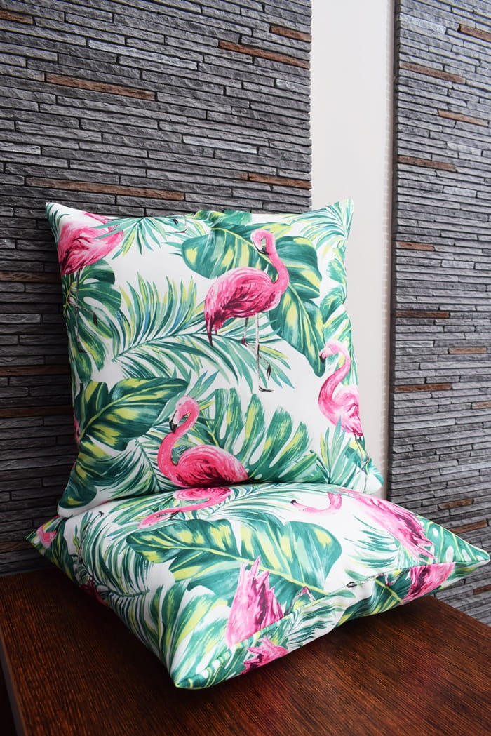 PODUSZKA DEKORACYJNA FLAMINGI LIŚĆ MONSTERA 45x45