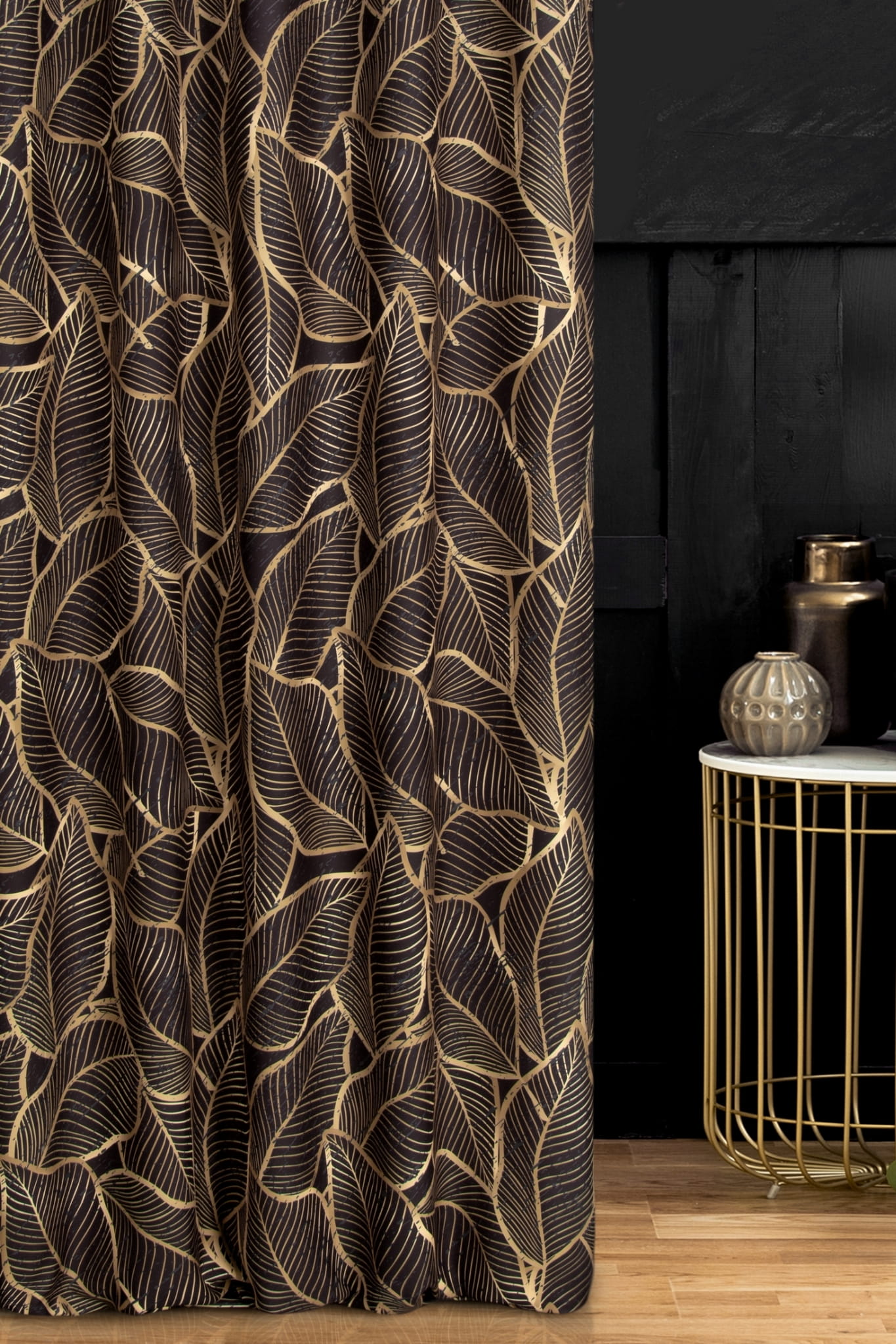 ZASŁONA NA WYMIAR CZARNO ZŁOTA LIŚCIE ADA opaska